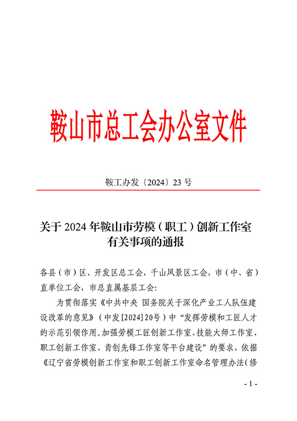 喜訊:白宏偉職工創(chuàng)新工作室被評為鞍山市職工創(chuàng)新工作室